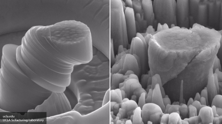 Создали этот сверхлегкий металлический материал американские ученые по заказу авиаконцерна Boeing . При всей кажущейся хрупкости Microlattice может выдерживать огромные, по сравнению со своим весом, нагрузки. Причина в его необычном строении — материал полый, и, по сути, на 99,99% состоит из воздуха, что напоминает строение другого прочного «материала» — человеческой кости. Инновационный металл состоит из сети сплетённых между собой миниатюрных полых трубок, и его вес в 100 раз меньше пенопласта. Выдающиеся свойства материала основаны на том же принципе, что заложен в Эйфелеву башню и позволяет ей поддерживать устойчивость. Сеть взаимосвязанных полых трубок, из которых состоит микролаттис, копирует структуру поддержки мостов. Только здесь всё немного иначе: толщина стенок трубок составляет всего 100 нанометров, то есть в 1000 раз тоньше человеческого волоса. Такой структуры учёным удалось добиться использованием инновационной технологии аддитивного производства, своим действием напоминающей 3D-печать. Но в отличие от 3D-печати, использующей послойное наложение структуры, метод, созданный лабораторией HRL, задействует специальные полимеры, реагирующие на свет и формирующие всю структуру за один процесс.