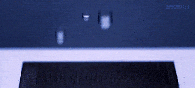 Под воздействием ультрафиолетового излучения, пропускаемого через специальный фильтр, находящийся в жидкой форме полимер формируется в трёхмерную решетку за несколько секунд.
