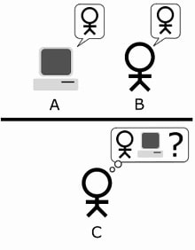 Стандартная интерпретация этого теста звучит следующим образом: «Человек взаимодействует с одним компьютером и одним человеком. На основании ответов на вопросы он должен определить, с кем он разговаривает: с человеком или компьютерной программой. Задача компьютерной программы — ввести человека в заблуждение, заставив сделать неверный выбор».