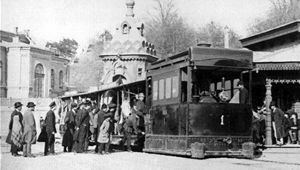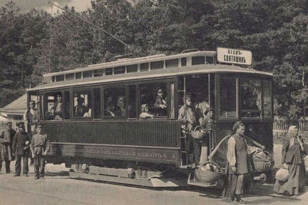 Первый электрический трамвай был запущен в 1892 году в Киеве, на бывшем Александровском спуске (теперь Владимирский спуск), соединяющий историческую часть Подола с Крещатиком. Вообще железные рельсы на то время были проложены в многих городах мира, был распространен конный рельсовый трамвай, также были попытки в постройке гражданского транспорта на паровой тяге но из-за дискомфорта и обилия дыма эта идея была отброшена в пользу электричества. Первый в мире электрический трамвай прошел в Берлине в начале 1880х годов, строителем выступила фирма Сименс — ее торговая марка хорошо известна до сих пор.