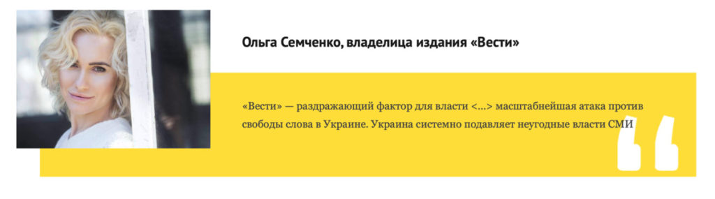 Издание «Вести», как и UBR, входит в медиахолдинг «Вести Украина», которым владеет Ольга Семченко — гражданская жена Александра Клименко, который был министром доходов и сборов при Януковиче.