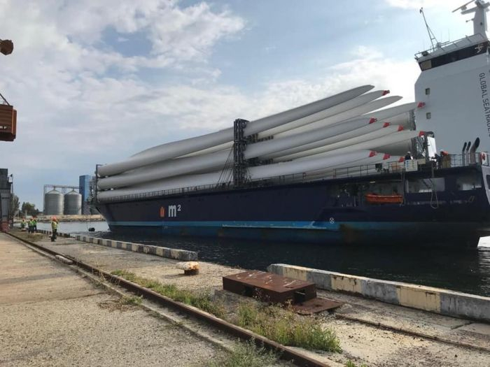 Судно Oceanic доставило в Скадовск 15 лопастей, каждая из которых имеет длину 25-ти этажного дома и имеет вес 17 тонн. Кроме этого на судне в Скадовск прибыли еще 90 тонн других комплектующих. Для безопасного разгрузки и транспортировки необычного груза в порту и городе были проведены работы по подготовке автодорог и габаритов для проезда специальных прицепов.