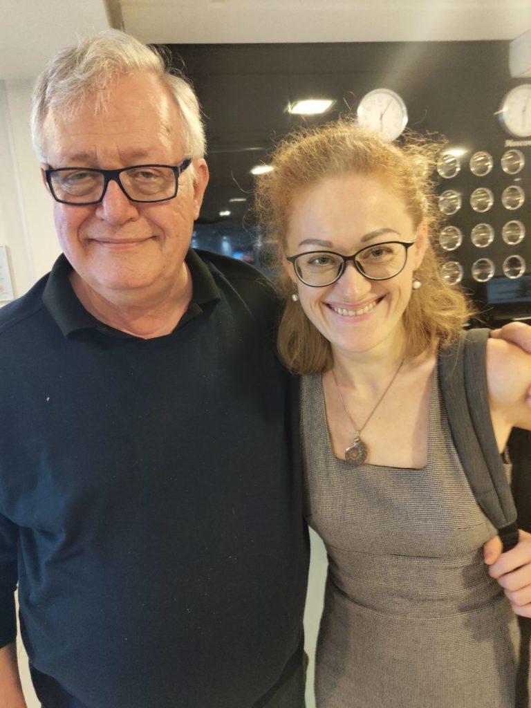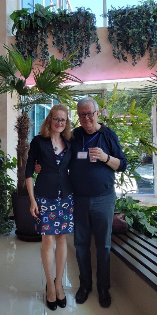 Главный редактор «Гранита науки» Дарья Тарусова с профессором Массимо Каппачиоли (Италия) на Гамовской конференции в г. Одесса 16 августа 2019 года