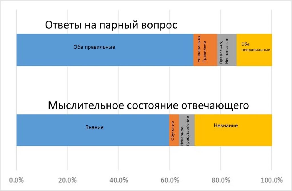 На диаграмме ниже показано, как соотносятся ответы на этот парный вопрос и мыслительные состояния отвечающих.