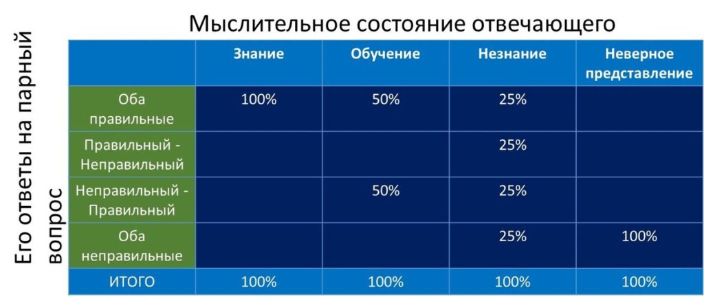 Оба правильные = Знание + 0.5 x Обучение + 0.25 x Незнание