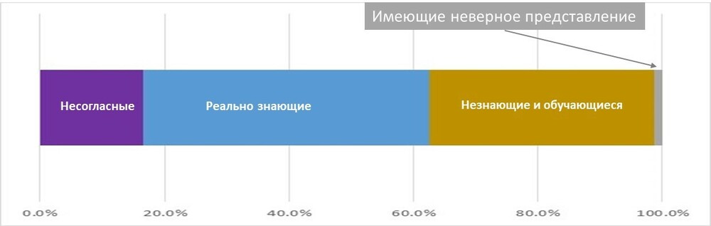 → доля упертых (несогласных) в силу собственных мотивированных рассуждений — 16,5%