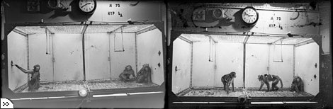 Другого рода эксперимент был проведен на обезьянах. В хвостатое ядро самца шимпанзе вводился электрод, после чего начиналось наблюдение. Стоило самцу начинать подходить к клетке с самкой, последняя нажимала на установленную в своей клетке кнопку, и самец уходил. Дельгадо рассматривал результат эксперимента, как воплощение мечты по усмирению диктатора, пусть и не в человеческих масштабах.