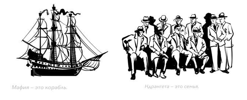 Например, в Мафии только определенный человек, делает определенное дело, а в Ндрангете любого могут поставить решать эту задачу. На корабле у каждого своя судовая роль, а в семье нет, здесь и роль существует, и общие задачи семьи. Другая структура организации, другие препятствия, другие механизмы повышения статуса.