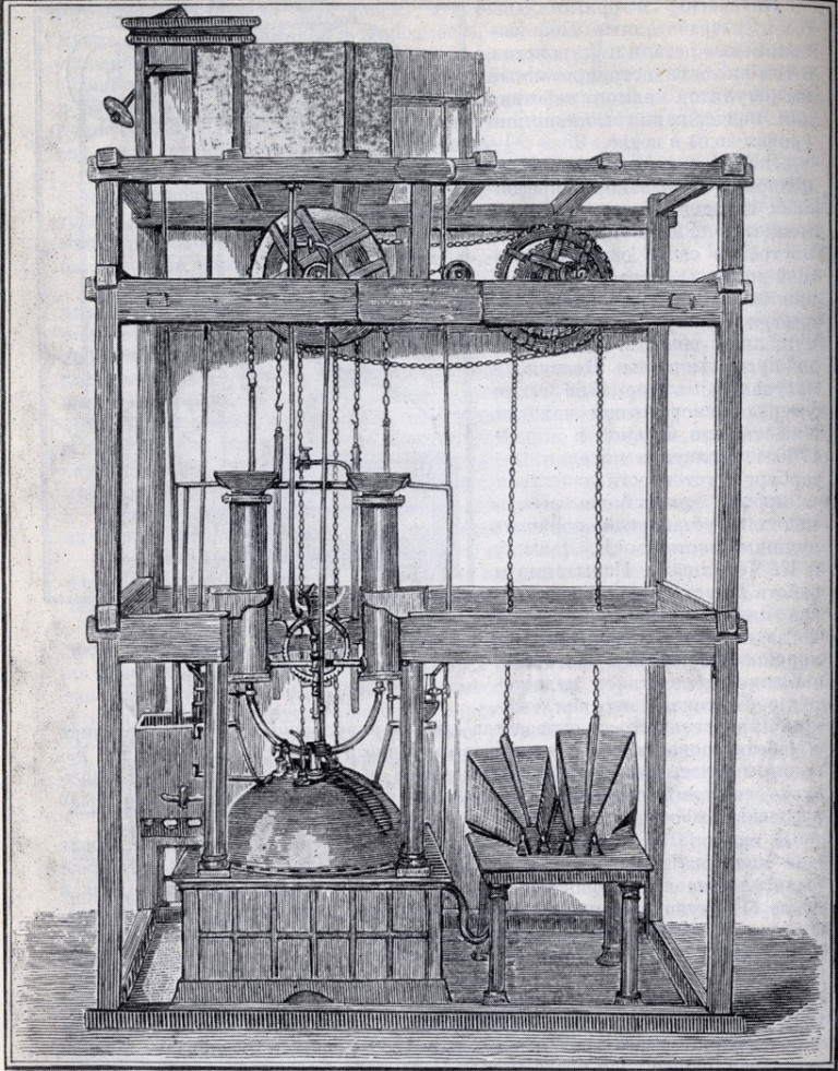 Огненные машины, которые работали в лондонском водопроводе, были изобретены Ньюкоменом. Это были громоздкие чудовища. Звали их еще атмосферными. Делали они десять ходов в минуту и всех удивляли своей быстротой.