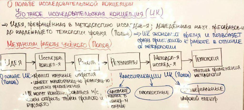 В следующей калабрийской экспедиции учёный применил метод исследовательских концепций. Как писал академик Попов, «исследовательская концепция – это ни что иное, как идея, превращённая в методологию исследования: доведенная научными преобразованиями до надлежащего технологического приемлемого уровня».