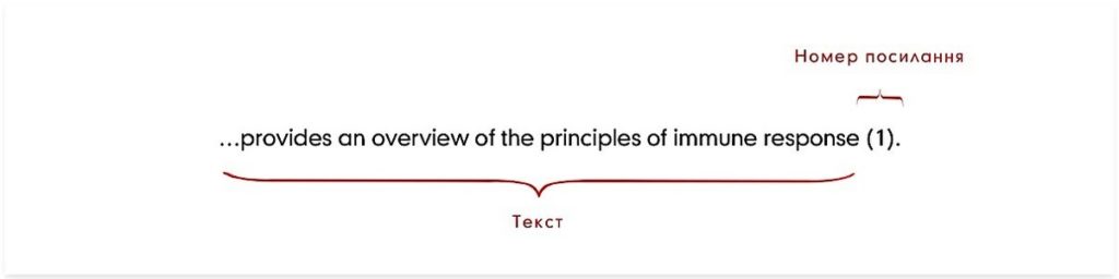 Цитаты нумеруются последовательно в том порядке, в котором они отображаются в тексте, и каждое цитирование соответствует нумерованном ссылке, содержащей информацию о публикации об указанном источнике, в списке ссылок в конце публикации или реферата.