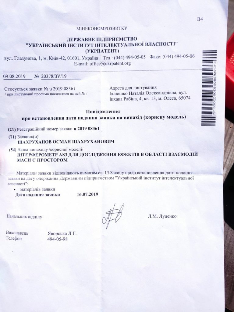 В 2013 году я пошёл в университет оформлять открытия, потом подал на патент… Но в университете уж очень долго с этим тянули, поэтому я подал на оформление в частном порядке, в ближайшее время уже получу официальные документы.