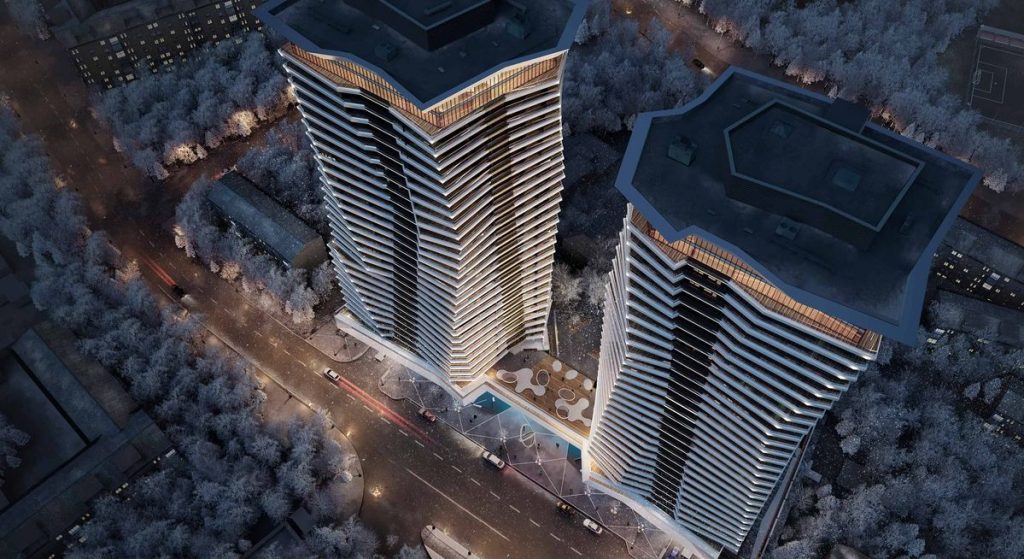 Синергия талантов, человекоцентричность, превращение музыки в камень, совершенство в деталях, сервисное лидерство – на таких ценностях, судя по сайту компании, замешана архитектура здания по проекту Анны Бородкиной, дочери именитого киевского архитектора Юрия Бородкина. «Стеклянный куб с диджитал-скульптурой» — так обозначает стиль здания застройщик. «Тут житель всегда в центре внимания и уверенно чувствует себя в кругу единомышленников» — этому слогану сложно возразить, поскольку застройщик разработал для жильцов дома целый софт для прозрачной системы оплат за коммуналку.