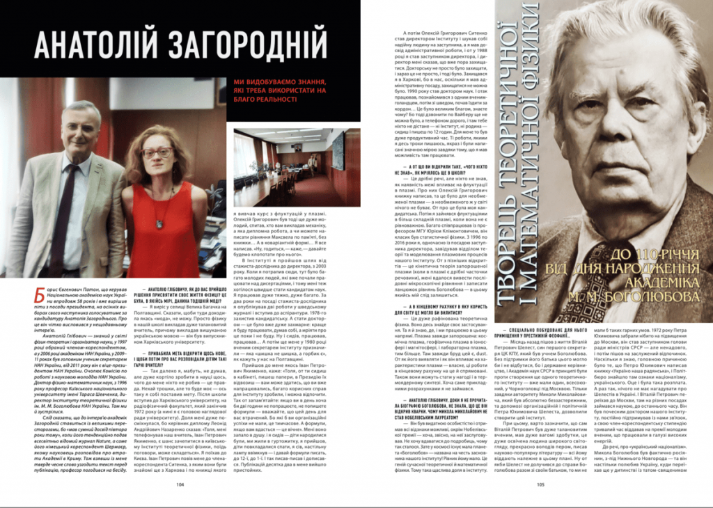 P.S. А пока готовился номер, мы успели взять интервью у директора Института теоретической физики Анатолия Глебовича Загороднего, который имеет все шансы уже этой осенью стать новым президентом Национальной академии наук Украины – по крайней мере, сам Б.Е. Патон объявил, что отдаёт свой голос за него. А структура солидная, с развитой преемственностью… Интервью с будущим президентом НАН к вашему вниманию, одним словом!