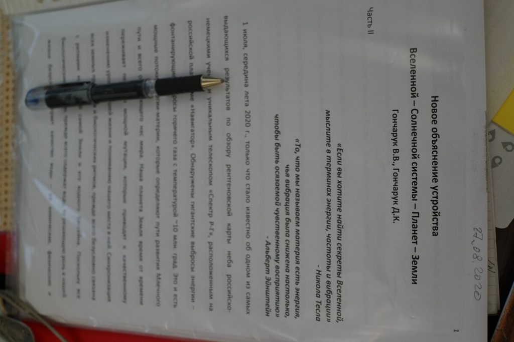 — Академик Яцкив (директор Главной астрономической обсерватории. – Д.Т.), мой друг, не знает ещё об этой работе, но он будет возражать. Друг друга любят только совершенно разные люди, не так ли?.. А вторым автором — Гончарук Д.К. – стоит мой внук: он закончил школу и поступил в Восточной Польше в университет, год проучился на физике, а сейчас поляки всех украинцев выгнали, и он подал документы на физфак Киевского университета. Почти на голову выше меня, длинный парень. Я просто решил взять его под свою опеку, чтоб он серьёзно занимался фундаментальной наукой, пока мозги не загажены традиционной физикой и традиционной наукой вообще.