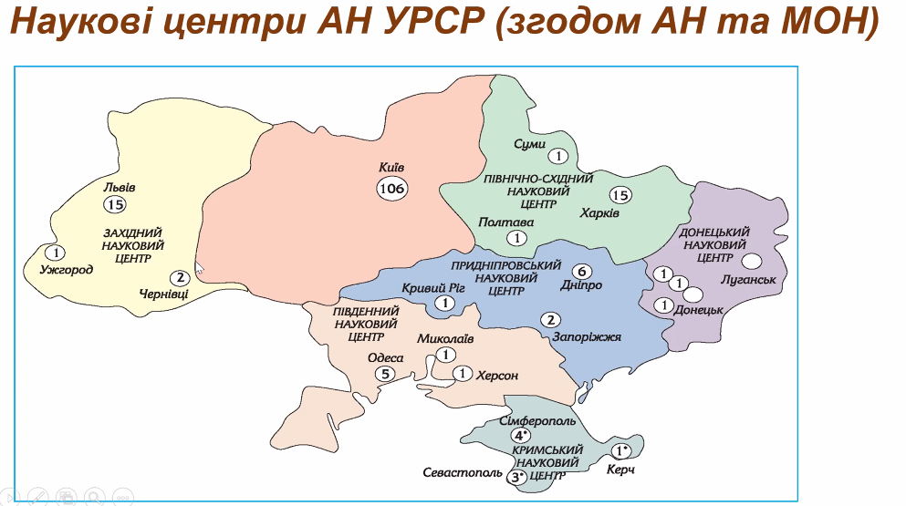В соответствии с постановлением ЦК КПУ и Совмина Украины «О повышении роли деятельности НТЦ в системе управления научно-техническим прогрессом», между центрами была поделена вся территория Украины так, как это показано на карте. Были даже выделены средства на создание аппаратов управления, которые под видом лабораторий добавлялись к какому-то институту.