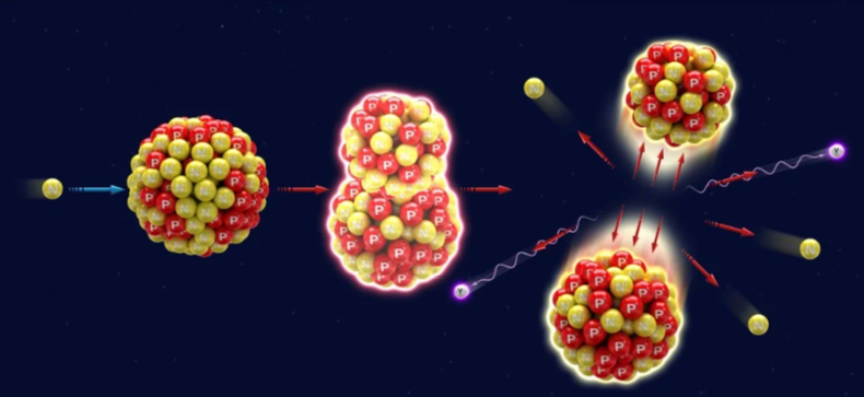 В традиционной атомной энергетике для получения энергии используется реакция деления ядра. В основном, это деление тяжёлого ядра изотопа урана-235, при котором высвобождается около 200 МэВ энергии.