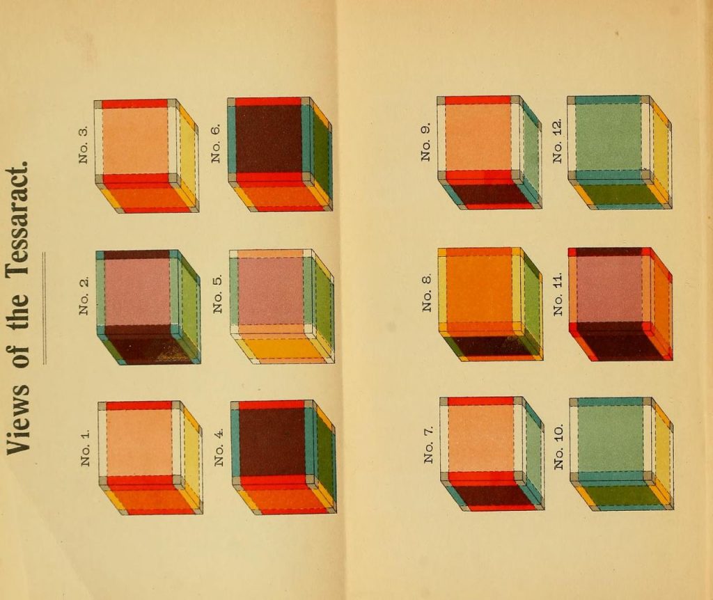 Он дает иллюстрации и инструкции по созданию этих кубиков, а также использует слово «тессеракт» для описания четырехмерного объекта. Хинтон также обещает, что, когда визуализация будет достигнута, его кубики смогут раскрыть скрытый потенциал.