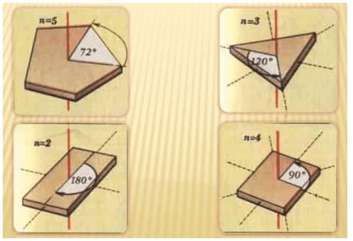 Поворотная симметрия (при которой объект совмещается сам с собой при повороте на угол 360 градусов/n, где n это целое число ≥ 2) наблюдается в природе у медуз, морских звёзд, у кактусов. Интересно, что рёбра кактуса являются не только резервуарами воды, но также и тентами, отбрасывающими тень – в результате ни одна часть кактуса не попадает под прямые лучи солнца надолго.