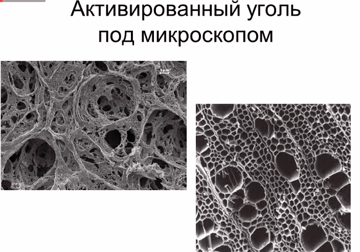 Активированный уголь – природный фрактал, используемый как фильтр в технике и медицине, потому что у него много мелких пор.
