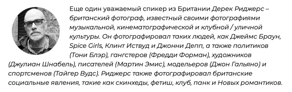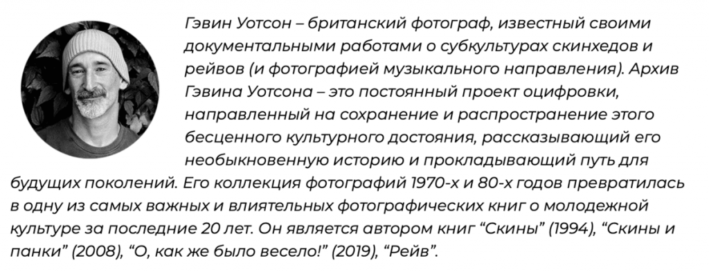 Международная конференция «Нарисуй субкультуру» подарила участникам и слушателям знакомство с такими всемирно известными британскими фотографами, как Гэвин Уотсон и Дерек Риджерс.