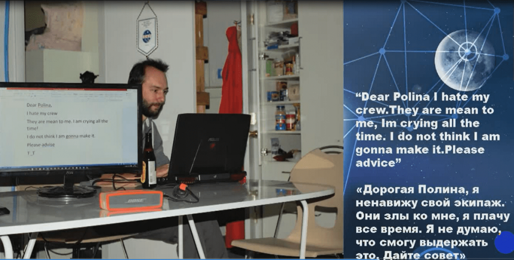 Экипаж испытателей постоянно мониторила дежурнай бригада врачей и инженеров. По всей станции расставлено около 80 камер, они могут детально увидеть все, даже если ты пишешь что-то на листке. Психологи за этим наблюдают. Командиром экипажа был у нас летчик-космонавт Евгений Тарелкин, который летал на МКС в 2014 году, бортинженером Дарья Жидова (она работает в РКК «Энергия»), врачом Стефания Федяй и еще было два инженера от НАСА: Аллен Миркадыров и Райнхольд Повилаитис. Мы все должны были говорить на двух языках. Конфликтных ситуаций мы все избегали, понимая, что нам 4 месяца друг с другом жить, и в токсичной атмосфере никому не хотелось находиться. Ты не можешь выйти, захлопнуть дверь и сказать: «Все, я больше не хочу с вами разговаривать!» Это очень классно тренирует терпимость и понимание друг друга. Мелкие разногласия и споры были разве что по работе.