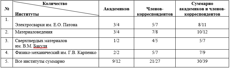 Возникает обоснованное предположение, что четыре академических института, а именно: Институт электросварки имени Е.О. Патона, Институт материаловедения, Институт сверхтвердых материалов имени В.М. Бакуля, Физико-механический институт имени Г.В. Карпенко, которые суммарно владеют контрольным (блокирующим) пакетом голосов на выборах как академиков, так и членов-корреспондентов, «приватизировали» (узурпировали) систему выборов: делят большинство вакансий между собой.