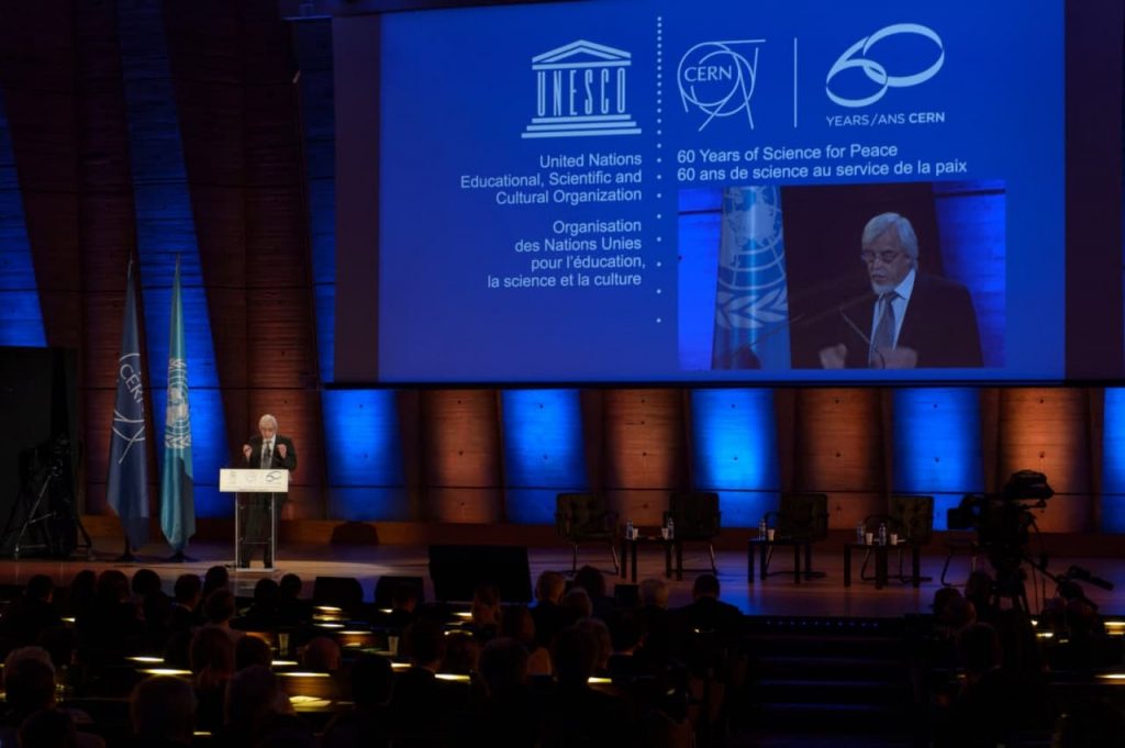 Наука пронизывает практически все аспекты современной жизни: экономические, социальные, культурные или гуманитарные и является одним из немногих «универсальных языков дипломатии». Весь 2014 год был посвящён празднованию 60-летию со дня основания CERN и прошел под девизом «60 лет Науки на Службе Мира» (60 Years of Science for Peace). Мероприятия проходили не только в Женеве, но и в штаб-квартирах UNESCO в Париже и Организации Объединенных Наций в Нью-Йорке, и в странах-участниках организации, и преследовали основную цель: подчеркнуть роль науки в качестве двигателя прогресса и мира и важность свободного распространение научных знаний посредством образования.