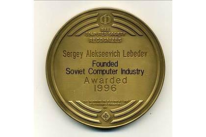 Международное признание пришло к Лебедеву много лет спустя после кончины. Международное компьютерное общество IEEE Computer Society удостоило С. А. Лебедева своей высшей наградой — медалью «Computer Pioneer Award» за выдающиеся новаторские работы в области создания вычислительной техники. На медали написано: «Сергей Алексеевич Лебедев. Разработчик и конструктор первого компьютера в Советском Союзе. Награжден в 1996».