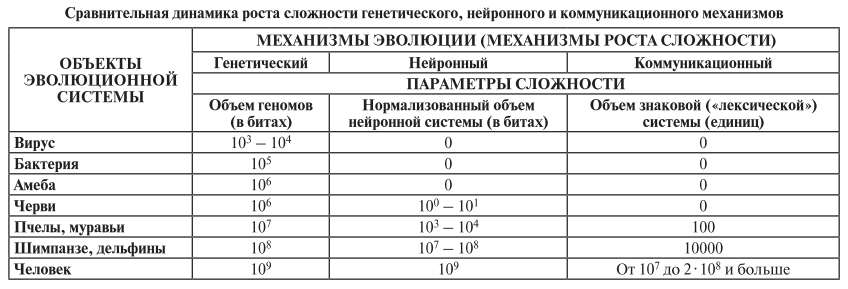 Итак, приступим к оценке сложности и ее динамики для некоторых механизмов эволюции. В качестве таковых мы здесь рассмотрим генетический, нейронный и коммуникационный.