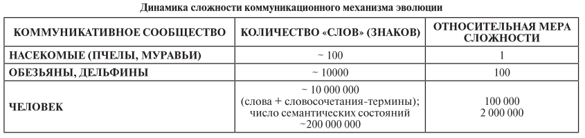 В соответствии с изложенным мы считаем, что субстанциями коммуникационного механизма эволючии являются сигнальные системы, развившиеся у некоторых видов социальных животных и, разумеется, у людей. Причем языковая / речевая коммуникация здесь служит главным элементом коммуникационного механизма усложнения.