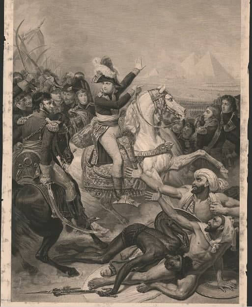 Наполеон прибыл в порт Александрии 1 июля 1798 года с примерно 25 000 солдат. Хотя он и добился некоторого успеха, в 1799 году ему пришлось отступить во Францию, а Египет вернулся к поддерживаемым Британией османам в 1801 году.