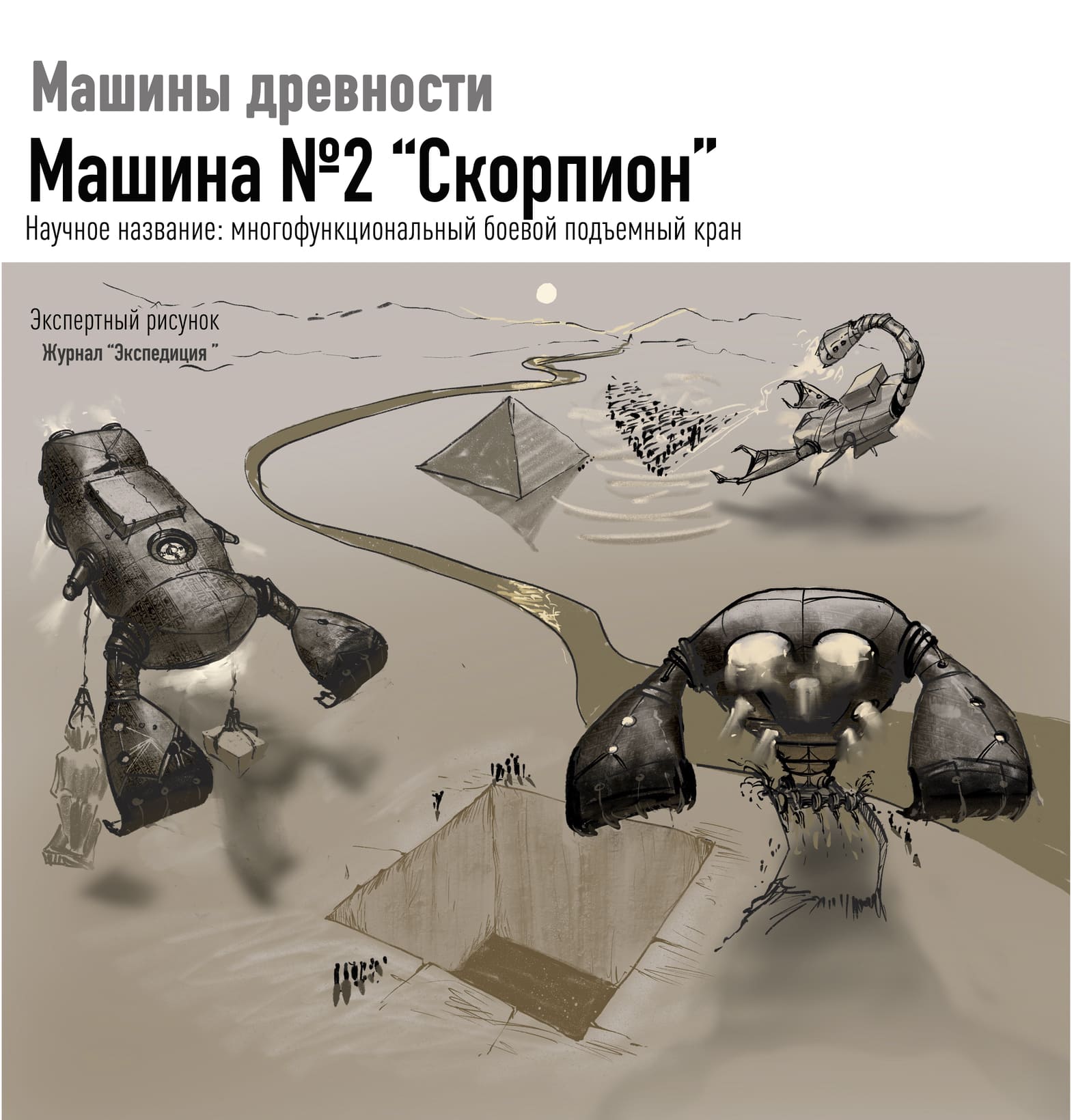 Итак, вот названия (данные для удобства), внешний вид и принципы устройства четырёх машинных механизмов древности: «Тур», «Скарабей», «Винт» и «Скорпион». Повторимся, названия пока для удобства – главное, само наличие этих машин, их функции и назначение.