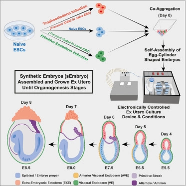 Эксперименты, проведенные в Институте науки Вейцмана в Израиле и опубликованные в журнале Cell. Сообщается, что это первый случай, когда исследователи вырастили полностью синтетические эмбрионы мышей вне матки.