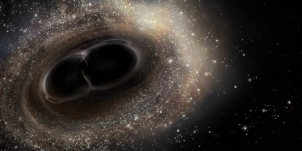 Такие приемники гравитационных волн построены в США, и в Италии. Размеры этих конструкций измеряются километрами. На разных концах такого сооружения стоят датчики, и соответственно при прохождении гравитационной волны между ними будет изменяться расстояние. Так вот, уверено регистрируют изменения расстояния между этими датчиками величиной с диаметр атомного ядра. Представьте себе: между датчиками километр, а расстояние между ними изменилось на диаметр атомного ядра! И это уверенно определяется и позволяет говорить о том, что прошла гравитационная волна. Так как приемников два или даже три, то они позволяют определить направление: откуда пришла гравитационная волна. Таким образом, гравитационные волны были открыты (звучит фантастически!) при слиянии двух черных дыр. Сама по себе черная дыра – объект фантастический, а тут представьте себе две черные дыры, которые вращаются вокруг одного центра масс как две звезды. Вращаясь, они теряют энергию, излучая гравитационные волны. В какой-то момент они падают друг на друга и сливаются в одну черную дыру; в этот момент происходит колоссальный выброс энергии. Это отдаленно похоже на взрыв на Земле, когда сотрясается воздух и распространяется звуковая волна. Только при слиянии черных дыр происходит сотрясение самого пространства-времени. Сама по себе черная дыра – объект-монстр, а тут сливаются два монстра. И вот это сотрясение пространства-времени распространяется практически без преувеличения во всей Вселенной. Мы это можем зарегистрировать, и оказалось, что это не такое уж и редкое событие – таких событий происходит несколько в течение года.