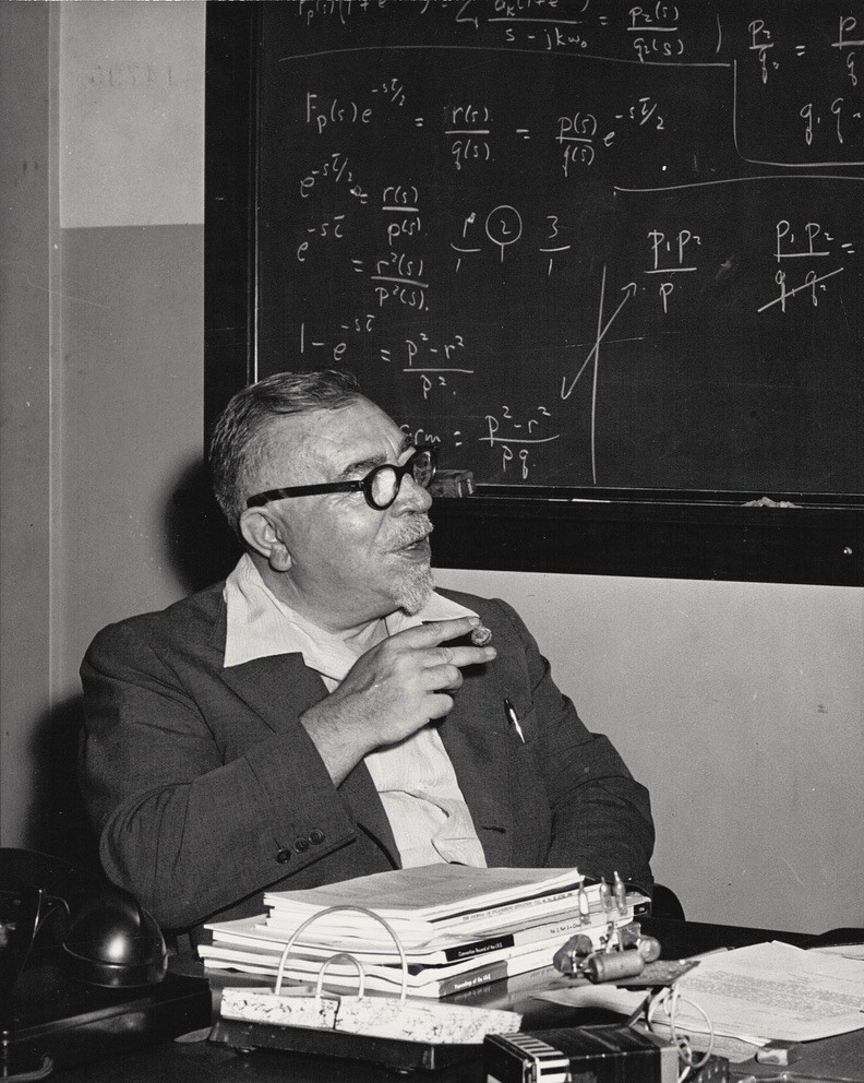 Насколько я помню, профессор Винер всегда приходил на занятия без каких-либо лекционных заметок. Первым делом он доставал свой широкий носовой платок и очень энергично, шумно сморкался. Он практически не уделял внимание студентам и совсем изредка объявлял, о чем, собственно, будет лекция. Он стоял лицом к доске, почти вплотную к ней, потому что был очень близорук. Даже мне с первого ряда с трудом удавалось увидеть, что же он пишет. Большинство студентов вообще ничего не видели.