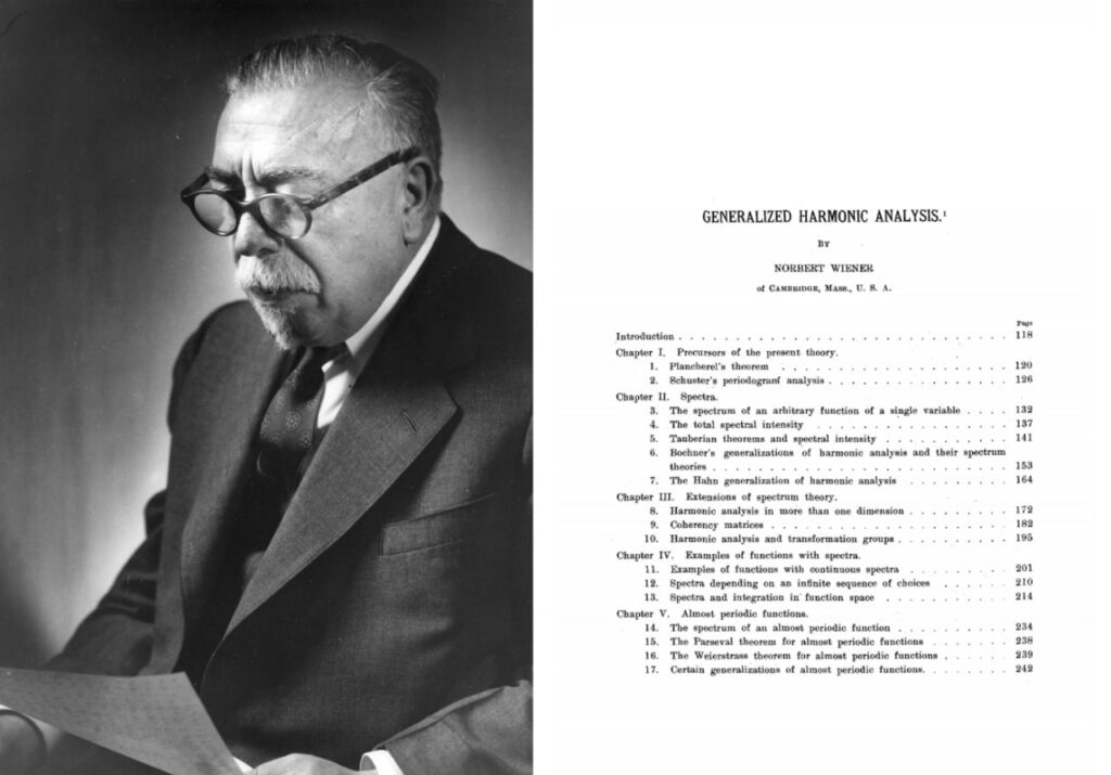 Сразу после Геттингена Винер начал работать в сфере прикладной математики, а в 1930 году — над так называемыми автокорреляционными функциями, которые обеспечивают корреляцию между сигналом и задержанной копией этого сигнала в зависимости от задержки. Теорема Винера — Хинчина показывает, как автокорреляционная функция Rₓₓ (τ) связана со спектральной плотностью мощности Sₓₓ (f) через преобразование Фурье: