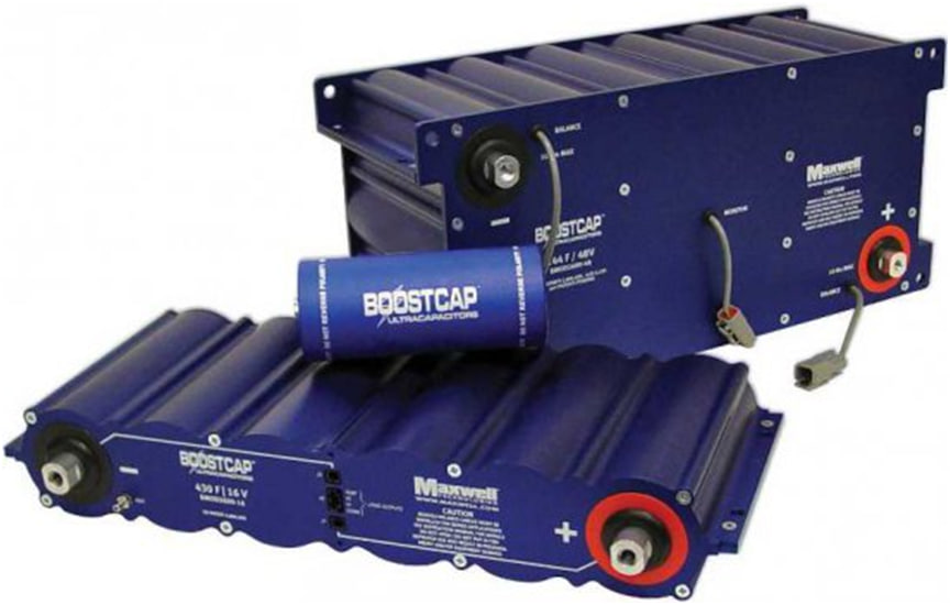 Одной из таких технологий является применение вместо аккумуляторных батарей – сборок суперконденсаторов. Супеконденсаторы имеют высокую емкость по сравнению с обычными конденсаторами, но отстают от современных аккумуляторных батарей по этому параметру. Суперконденсатор более надежен, прост и практически не подвержен износу, в отличие от аккумуляторной батареи (в основе работы которой лежит химическая реакция). Суперконденсатор может выдержать сотни тысяч циклов заряда и разряда, а расчетный срок его службы составляет более 15-20 лет. Такие системы протестированы и нашли свое применение в городском транспорте (китайские компании Sinautec, Shanghai Aowei Technology и Beiqi Foton Motors, американские Sinautec Automobile Technologies и Foton America Bus и многие другие). Разработками этих компаний является суперконденсаторный автобус (Ultracap Bus), который подзаряжается на остановках.