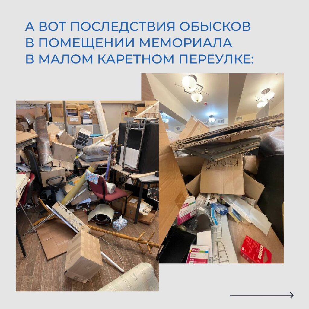 Обыски проводились в присутствии оперативников Центра «Э» — подразделения МВД России, которое отвечает за борьбу с экстремизмом. «Мемориал» подозревают в реабилитации нацизма. Уголовное дело возбудили третьего марта без конкретных фигурантов. «В отношении неустановленных сотрудников», – так написано в постановлении. Их обвиняют в том, что в списки жертв политического террора попали имена трех человек, одного из которых в СССР лишили свободы за работу в немецком полицейском отряде, а двух других осудили за измену родине. Сообщает «Настоящее время».