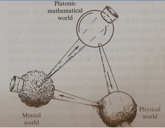 Попробуем, в дополнение к сказанному, посмотреть на жизнь с точки зрения общей структуры реальности. Это удобно сделать, обратившись к графическому представлению такой структуры Роджером Пенроузом, к Троесферию «Три мира, три тайны». Смысл сфер должен быть понятен из подписей: физический мир есть мир материальный; ментальный — мир индивидуального мышления и культуры; платонический — мир разума самого по себе, безотносительно к человеческой культуре и истории. Платонический мир включает математические формы, но не ограничивается ими. Изображенные конусами связи между мирами формируют невозможный треугольник шведского художника Реутерсварда, переоткрытый молодым Пенроузом. Невозможность треугольника отражает, по мысли сэра Роджера, парадоксальную структуру реальности.