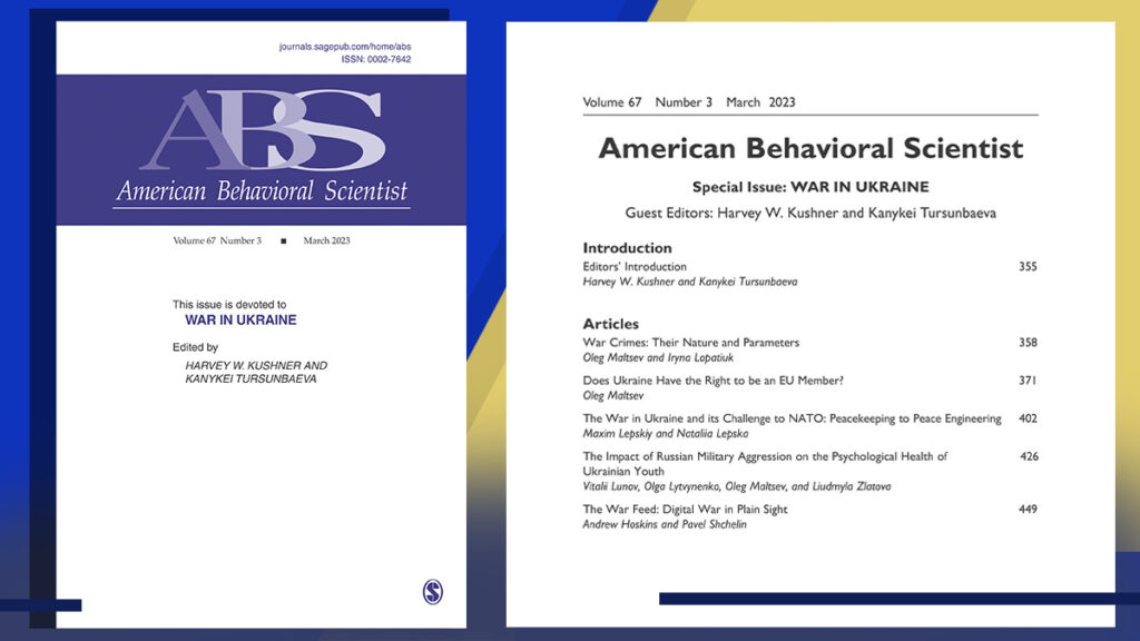 Одновременно с этим научный мир в марте 2023 года увидел специальный выпуск журнала American Behavioral Scientist – War in Ukraine, посвященного войне в Украине. Его редактором стал Харви Вольф Кушнер.