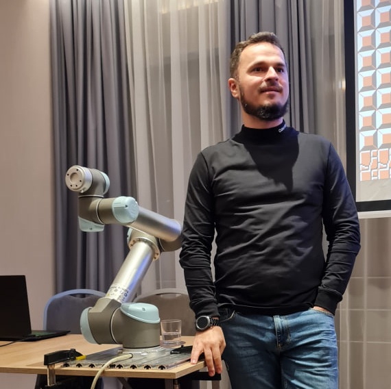 Віктор Богданович Єгоров – доктор технічних наук, сумісник на кафедрі автоматизації технологічних процесів та робототехнічних систем ОНТУ (Одеса), штатний співробітник Інституту телекомунікацій та глобального інформаційного простору НАН України (Київ), засновник лабораторії робототехніки MiRONAFT FabLab та співзасновник групи компаній MAT QWeld, RAIM Solutions Corp., Qweedo Robotics і т.д.